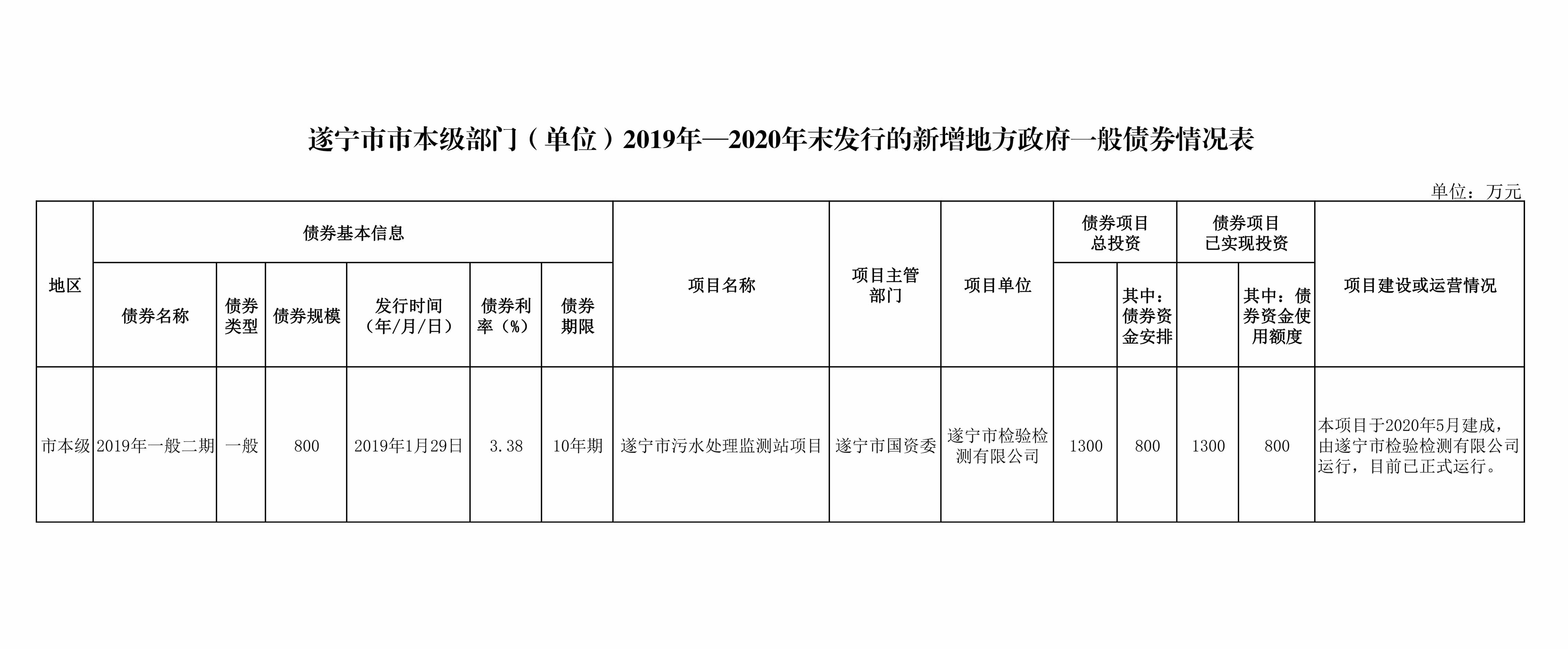 ? ? 根據(jù)財政廳關(guān)于印發(fā)《四川省政府債務(wù)信息公開實施細(xì)則(試行)的通知》(川財債〔2019〕9號)文件要求,現(xiàn)將我單位2019年—2020年度存續(xù)期內(nèi)地方政府新增債券資金使用、項目建設(shè)進(jìn)度、運營情況公開如下。